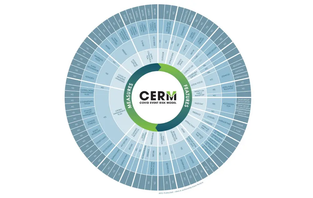 Le COVID Event Risk Model (CERM) doit guider les organisateurs d'événements et les autorités locales dans l'organisation d'événements safe. Ce modèle dynamique a été développé par l'Alliance des fédérations belges de l'événementiel (ACC, Febelux, BESA et BECAS) et le Centre d'expertise Public Impact de la Karel de Grote Hogeschool en collaboration avec Visit Flanders et EventFlanders. Depuis le 1er juillet, les organisateurs privés et publics pourront tester gratuitement leurs événements sur d'éventuels risques COVID-19 via le site multilingue www.covideventriskmodel.be. Le COVID Event Risk Model a été approuvé par le GEES et s'applique aux événements touristiques, sportifs, culturels et d'entreprise en Flandre, en Wallonie et à Bruxelles.