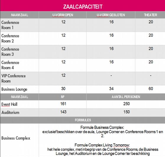 Living Tomorrow beschikt in en rond het complex over tal van faciliteiten voor een organisatie op maat. Elke ruimte heeft zijn eigen 'look & feel' en mogelijkheden. In huis heeft Living Tomorrow reeds heel wat mogelijkheden. Het overige gebeurt in samenwerking met kwalitatieve partners. Van badging tot videostreaming of de integratie van een volledig audiovisueel concept. Voor u om het verschil te maken.Ook hotelreservaties, luchthavenvervoer en het regelen van taxi's neemt het Event Team graag van u over.